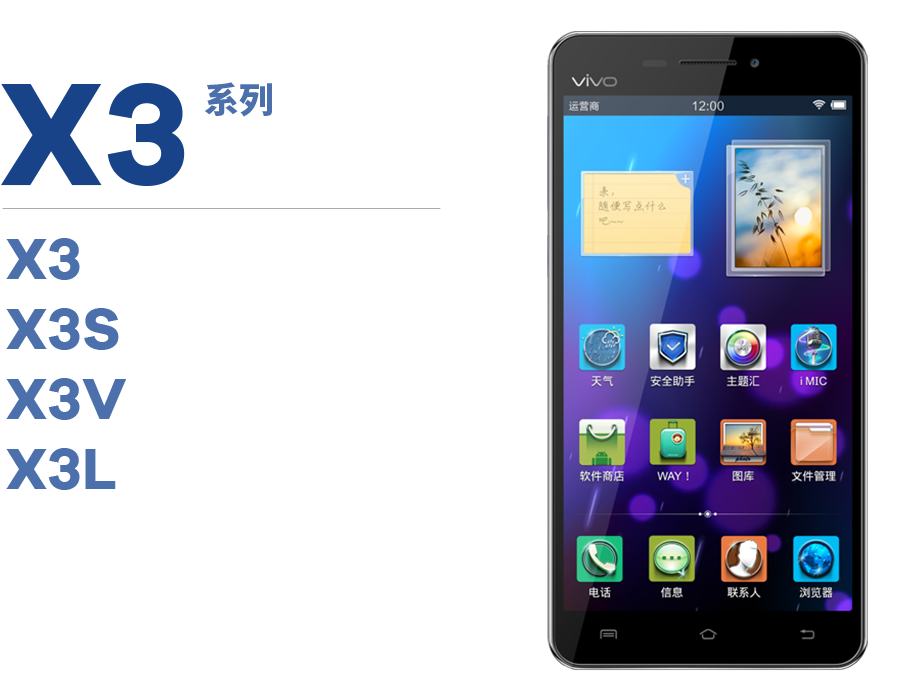 X3 的后续小改款 X3S,Funtouch OS 也恰好由拟物化往扁平化潮流的方向迈进;而期间恰逢 4G 网络的兴起,后面基于 X3 再推的延伸版本 X3V、X3L 均开始支持 4G 网络。