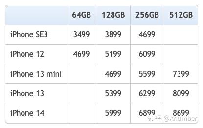 和其他型号相比,iPhone SE3 价格低很多,数据来自苹果官网,可能存在变动。