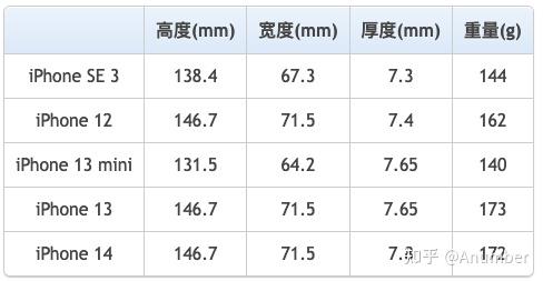 在售小尺寸 iPhone 尺寸对比,数据来自苹果官网。